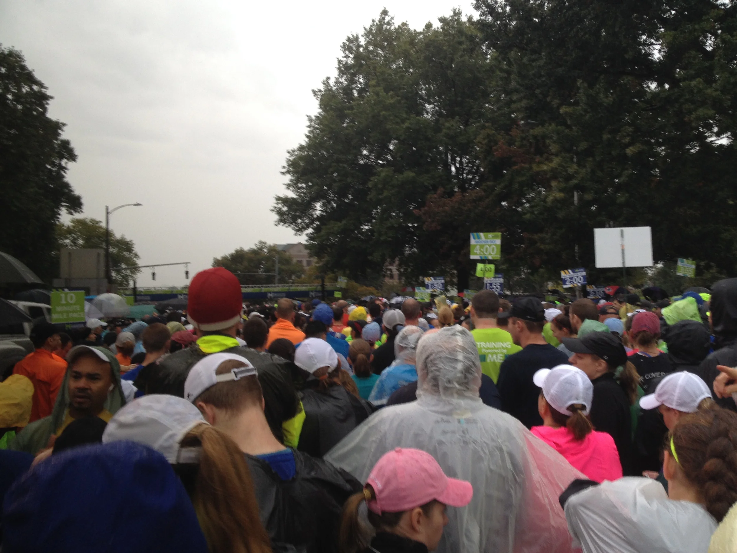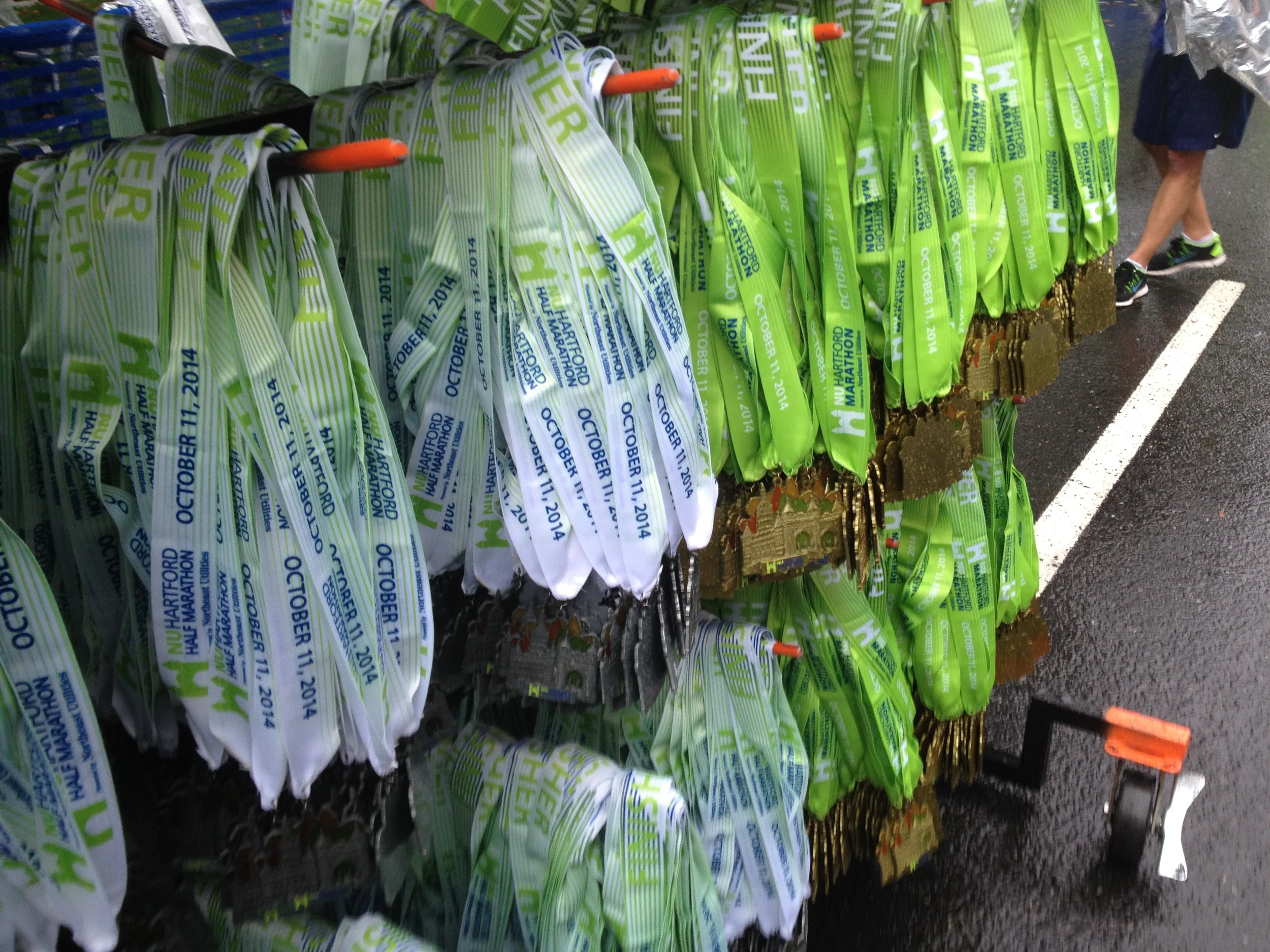 Leading up to the race, the weather had been beautiful all week long. In fact, the weekend was looking quite nice, except for the six hours around the race (seriously!). It was in fact rainy, and decently chilly, but just look at this Fox CT News report to see that this wasn't keeping almost 15,000 runners from participating in this year's 5K, half marathon and full marathon. I discussed with my wife the night prior, that after training for 3-4 months, a little bit of rain isn't going to keep most runners from running in their planned marathon.